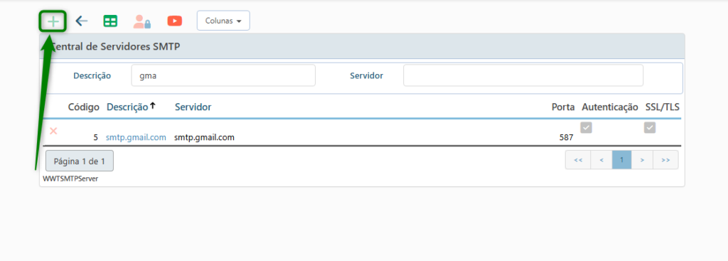 Configurações > Parâmetros > Configurações Proxy / E-mail > Servidores SMTP - Clique para incluir um novo servidor