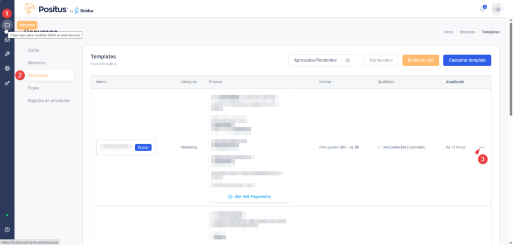 - Vá até a tela de Templates: