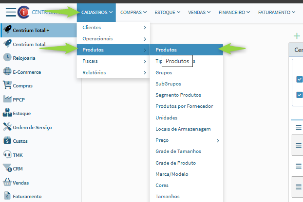 1. Centrium Total > Produto > Produto