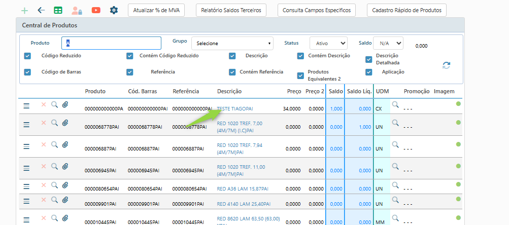 Acesse o cadastro do produto