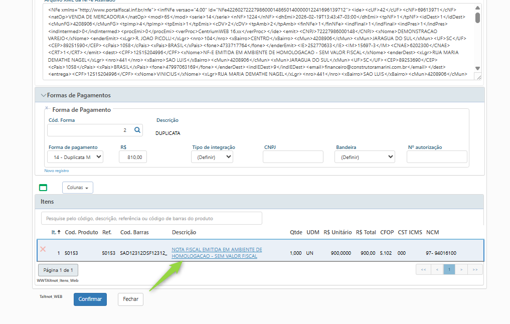 Recomenda-se revisão pelo time fiscal antes de utilização em produção