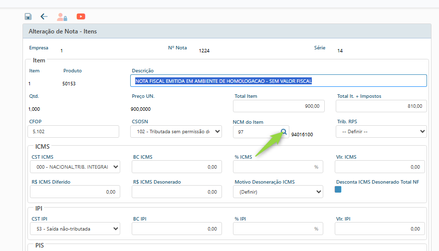Clique na lupa 🔍 no campo de NCM