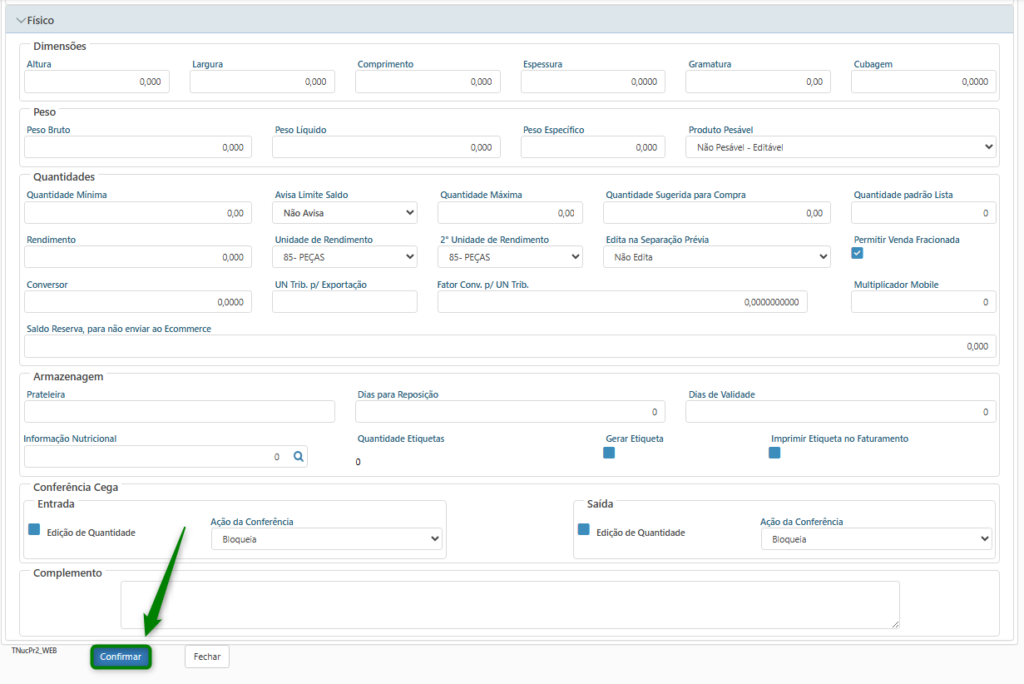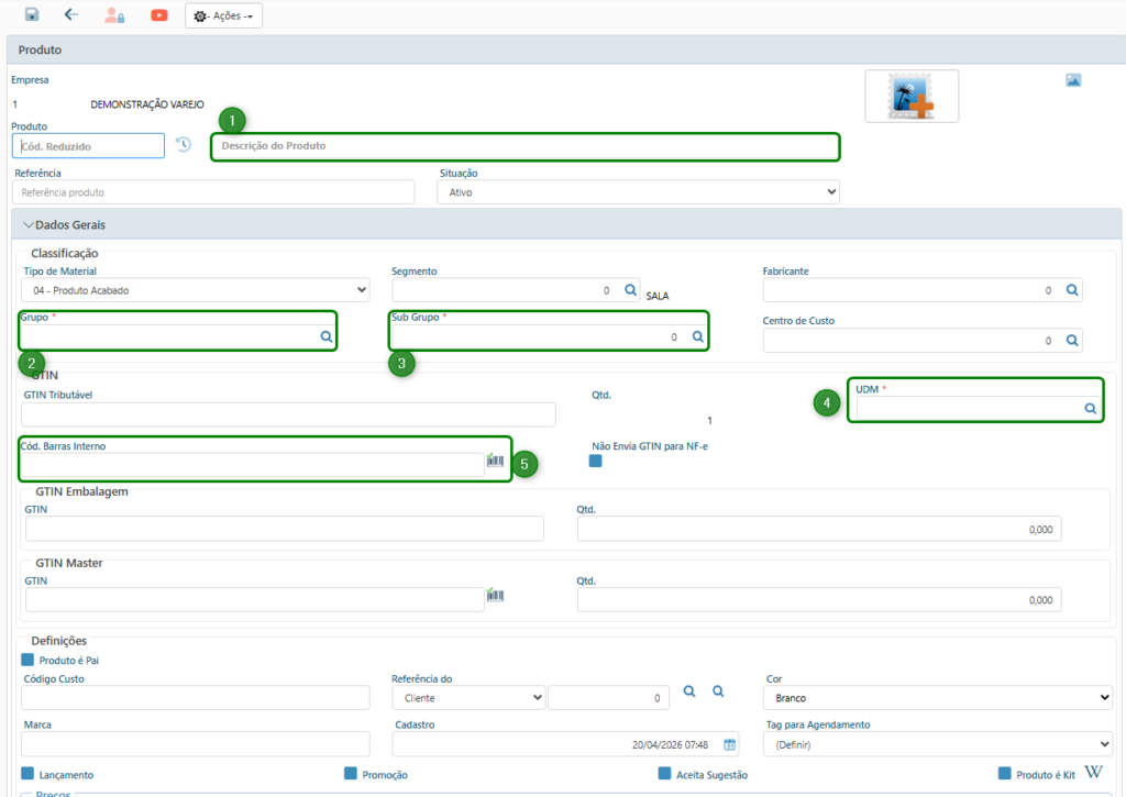 - Código de Barras Interno: Código utilizado para identificação do produto