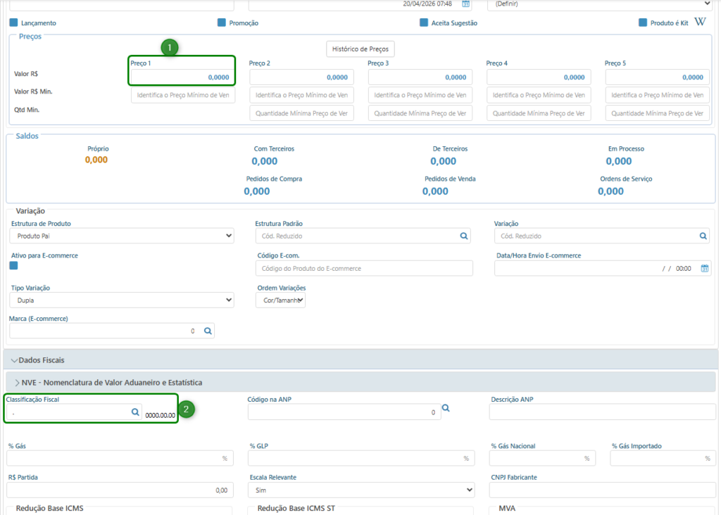 - Preço 1: Valor de venda do produto