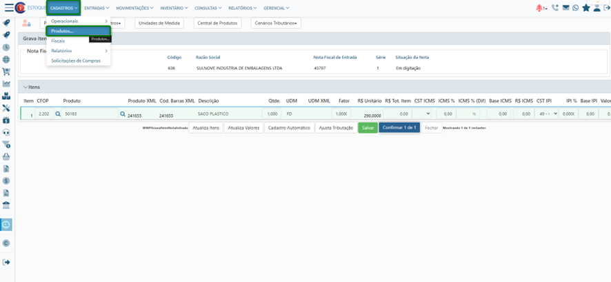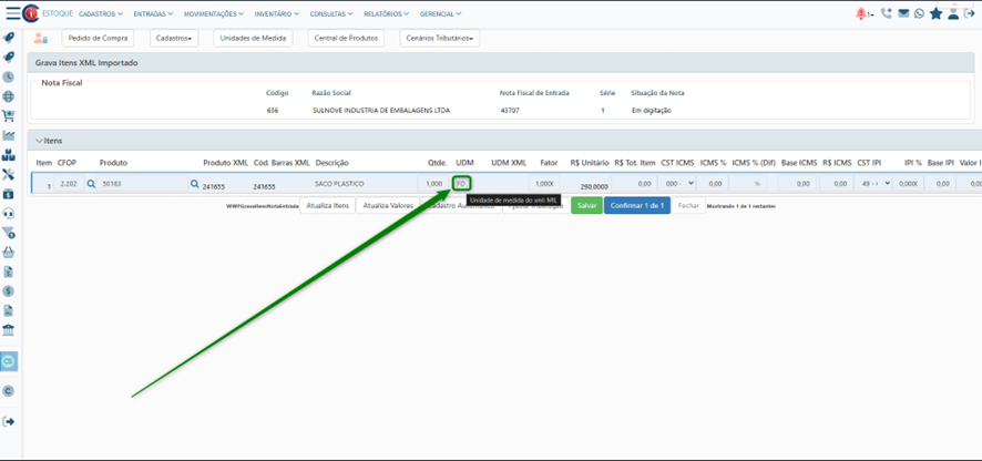 Como proceder quando a unidade de medida do XML não está cadastrada no sistema na entrada de nota fiscal: