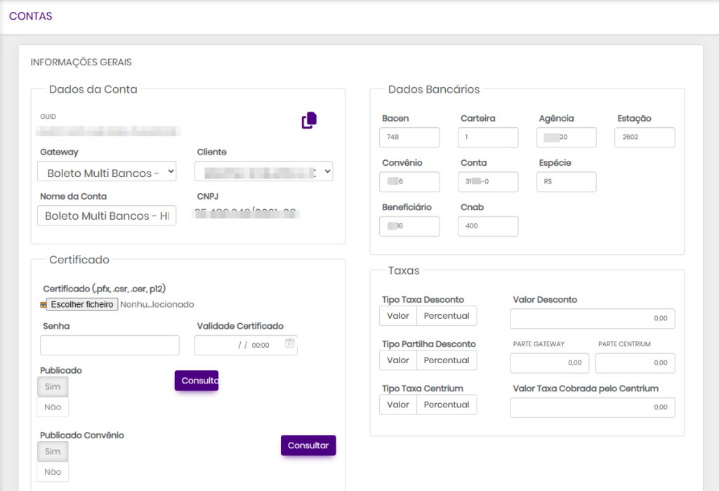 Configuração da Conta no Centrium Pag (TRNConta)