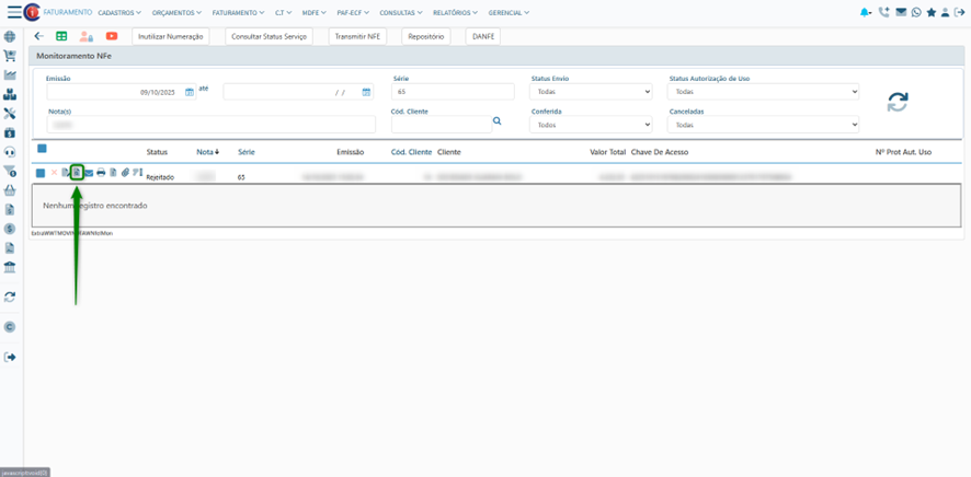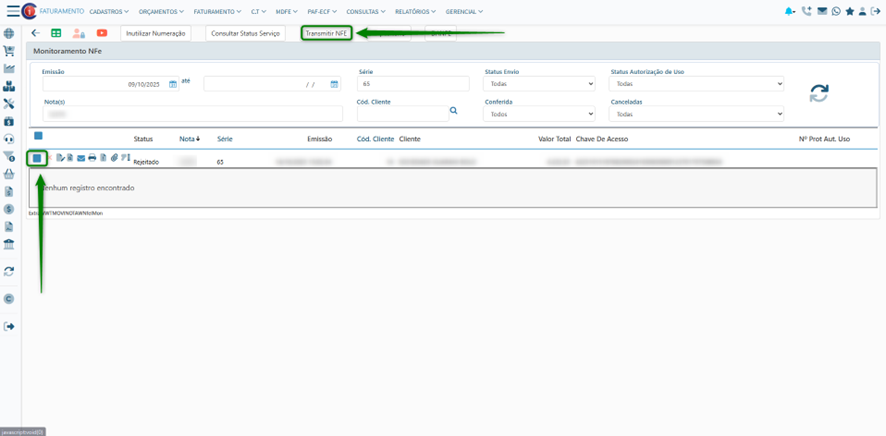Ao transmitir a nota, será exibida a mensagem “Rejeição: Informado NCM inexistente”.
