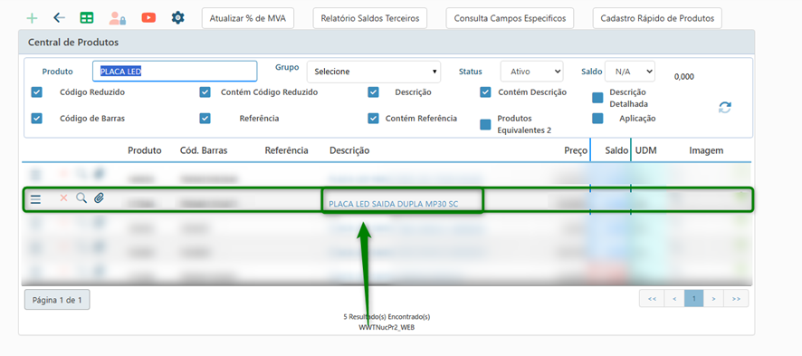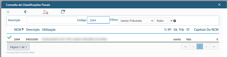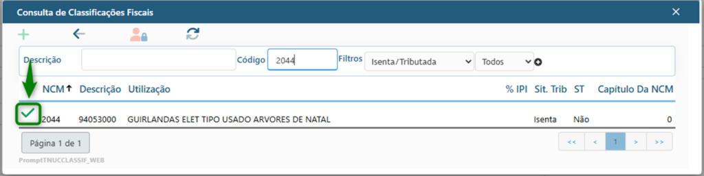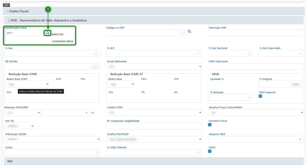 • No item da nota, clique no ícone da lupa para visualizar os demais códigos disponíveis.