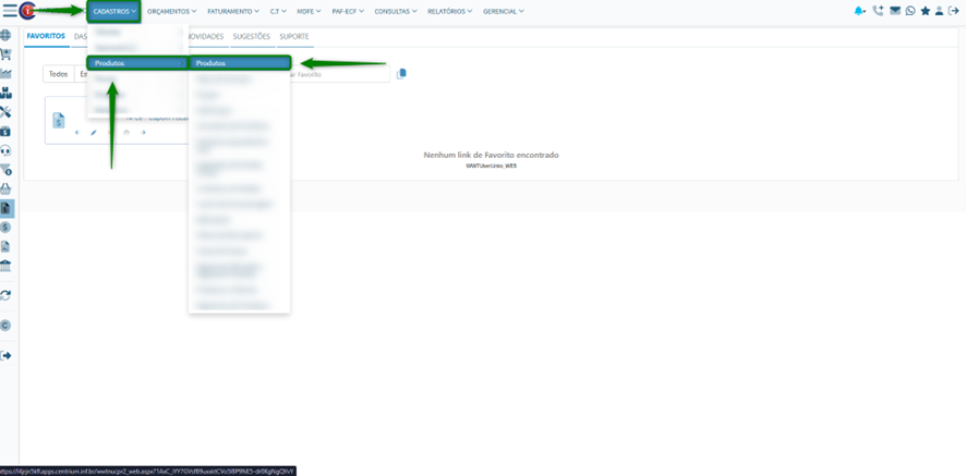 Acesso ao Cadastro de Produtos e Edição da Nota Fiscal no Faturamento NFe.