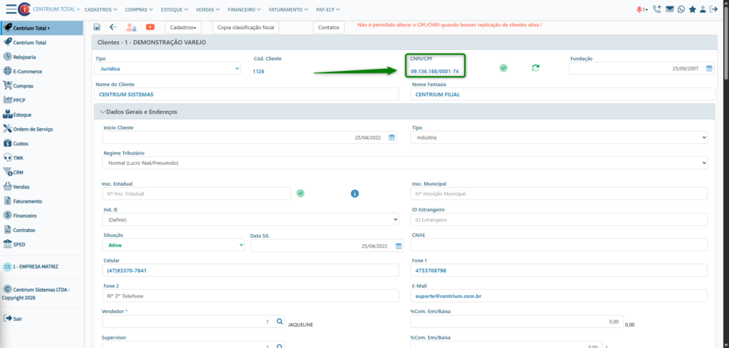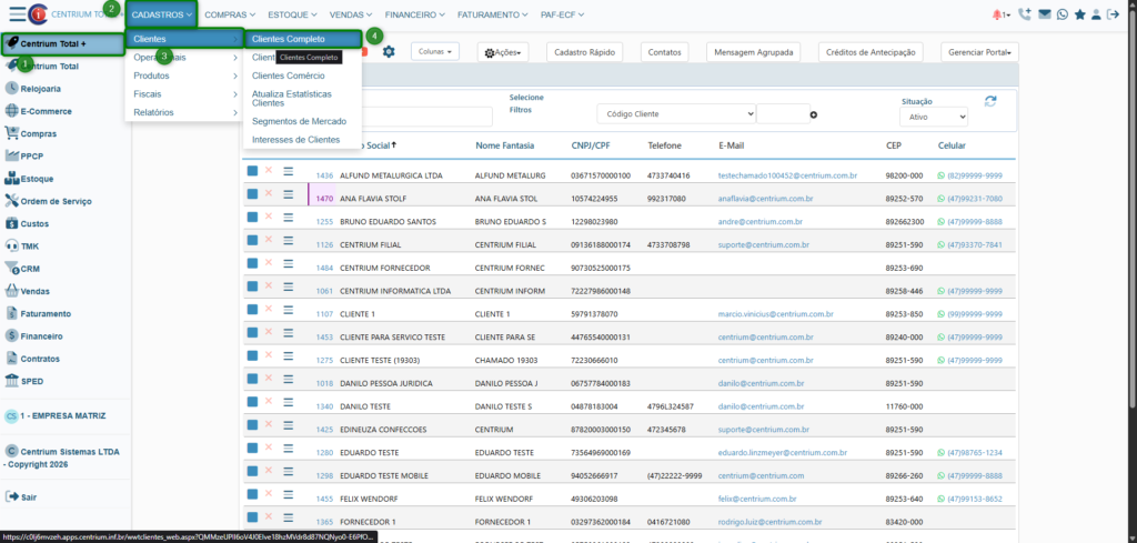 Centrium Total+ > Cadastros > Clientes > Clientes Completo