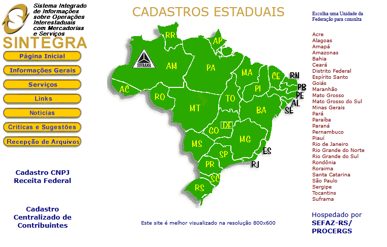 - Acesse: http://www.sintegra.gov.br/