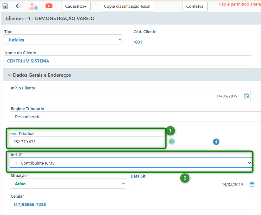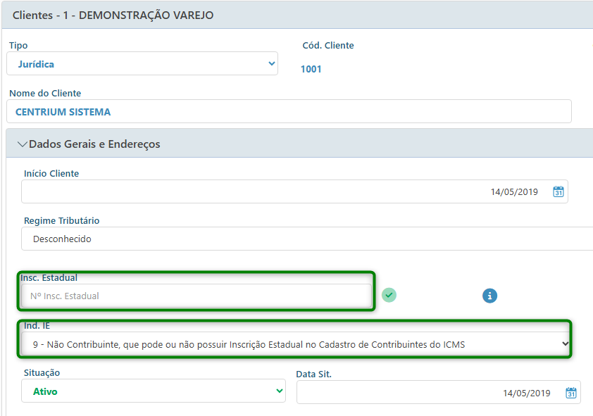 Caso o cliente possua Inscrição Estadual