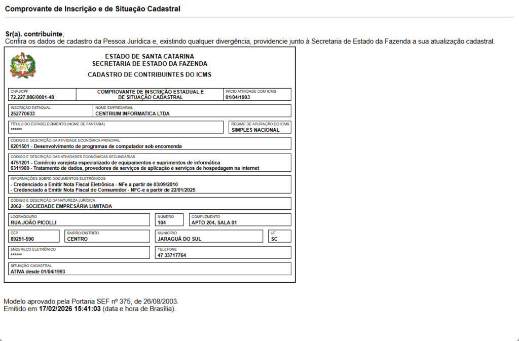 - Acesso à internet para consulta no site do Sintegra