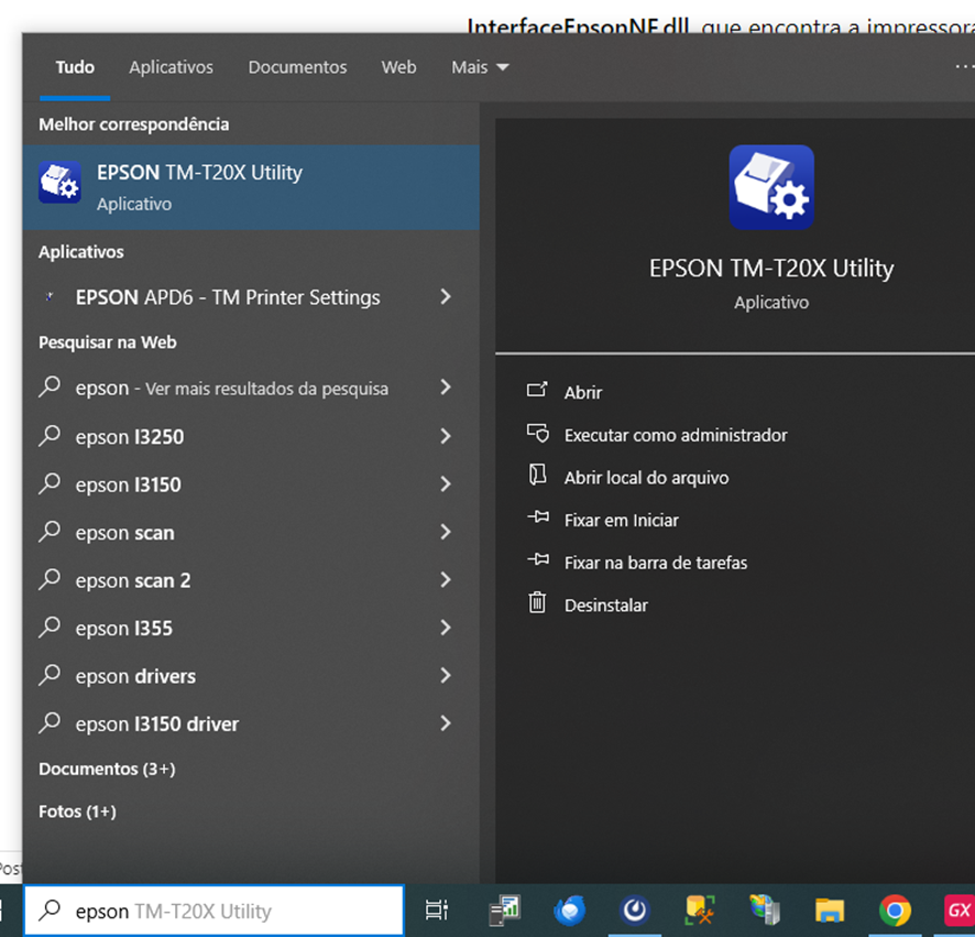 1 – Tenha o Epson Utility instalado, procure por “Epson” no menu iniciar