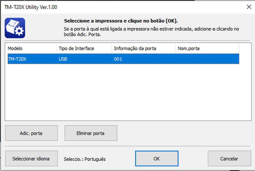 Configuração EPSON TM Virtual Port Driver Port Assignment Tool para a versão 3.0