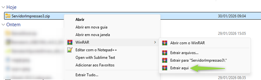 Extraia os arquivos para uma pasta fixa e fácil acesso, como “C:\ServidorImpressao”