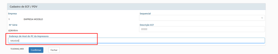 Case deixar em branco, será utilizado uma configuração default de “localhost:4545” e exibirá uma mensagem em tela avisando que o Host não está configurado. Caso a impressora esteja em outra máquina e o host não estiver configurado, nada acontecerá, caso esteja configurado o host e em outra máquina, a impressão será enviada para aquela máquina.